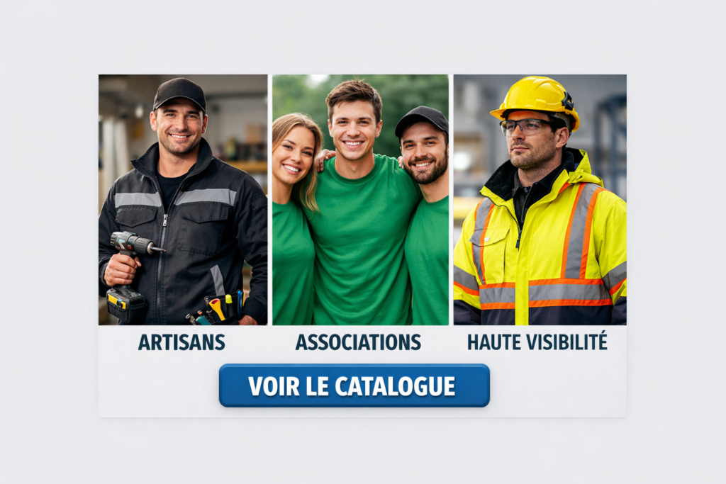 - Textiles personnalisés pour les professionnels de tous corps de métiers (BTP, restauration, médical, services…), mais aussi pour les événements privés tels que EVJF, EVG, mariages, clubs ou associations.